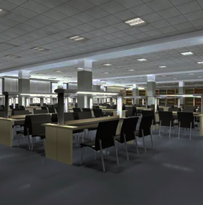 控制藏書區(qū)和閱覽區(qū)。藏書區(qū)采用多功能傳感器控制和定時控制。當(dāng)藏書區(qū)開放時自動開啟1/3隔燈照明,保證基本照度。有人進入時多功能傳感器自動開啟該區(qū)域的燈光,方便取閱。取閱者離開后延時關(guān)閉該區(qū)域燈光以節(jié)約電能。藏書區(qū)停止使用時延時關(guān)燈;閱覽室則采用照度控制和定時控制。照度傳感器根據(jù)室外光照自動控制窗邊燈光和電動窗簾,保證合適的閱讀照度,同時節(jié)約能源。閱覽室停止使用時延時關(guān)燈。