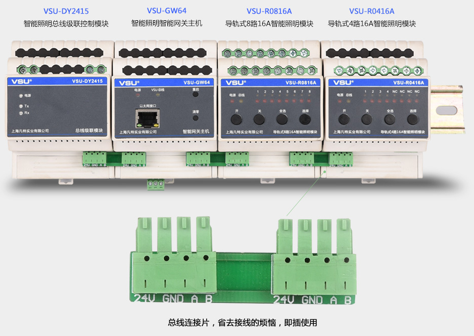 VSU-NET總線產(chǎn)品,大都采用雙總線口的設(shè)計(jì),搭配連接片使用,極大降低施工人員接線的工作量,產(chǎn)品設(shè)計(jì)合理專業(yè)、系統(tǒng)、更加人性化;系統(tǒng)配置免編程,手機(jī)即可完成簡(jiǎn)單的系統(tǒng)編程,不需要電腦,人機(jī)互動(dòng),真正實(shí)現(xiàn)智能化控制。