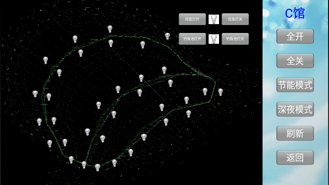 智能照明控制系統(tǒng)對各個場館內(nèi)的照明納入到統(tǒng)一的系統(tǒng)平臺進行集中管理,實現(xiàn)一鍵全開全關,游樂園可根據(jù)不同節(jié)日預設不同燈光場景,增添假日氣氛,也可根據(jù)客流量預設燈光(如下圖:節(jié)能模式),在保持照明需求以及氛圍感的同時,實現(xiàn)節(jié)能減排。