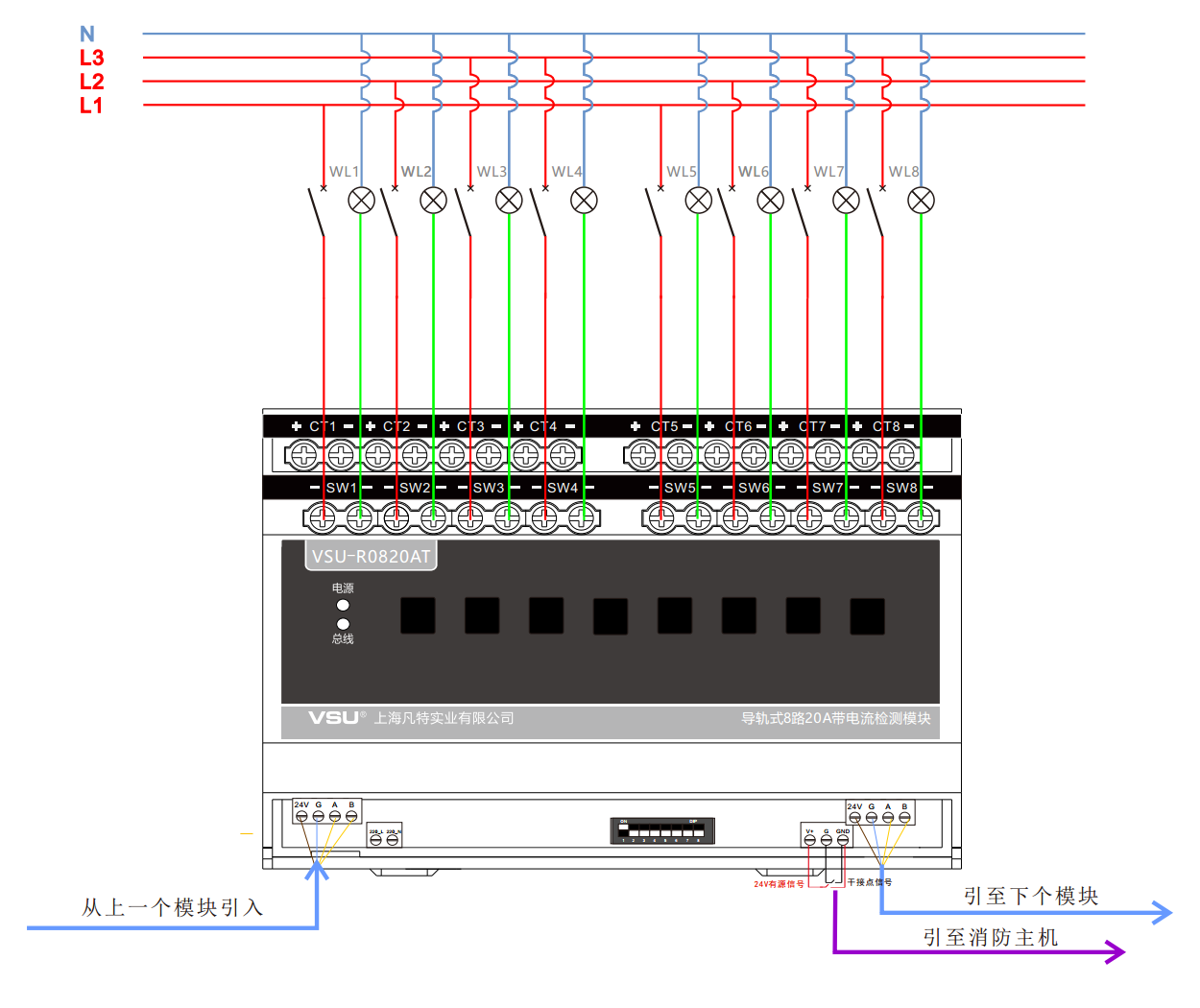 本產(chǎn)品為導(dǎo)軌式安裝,電流檢測為穿心式接線,含8路智能繼電器,每回路可獨(dú)立控4400W燈具的開關(guān),帶強(qiáng)切功能與互鎖功能;檢測每回路實(shí)際用電電流,通過實(shí)時(shí)電流與平時(shí)電流對比,精確排查回路燈具的損壞。 |