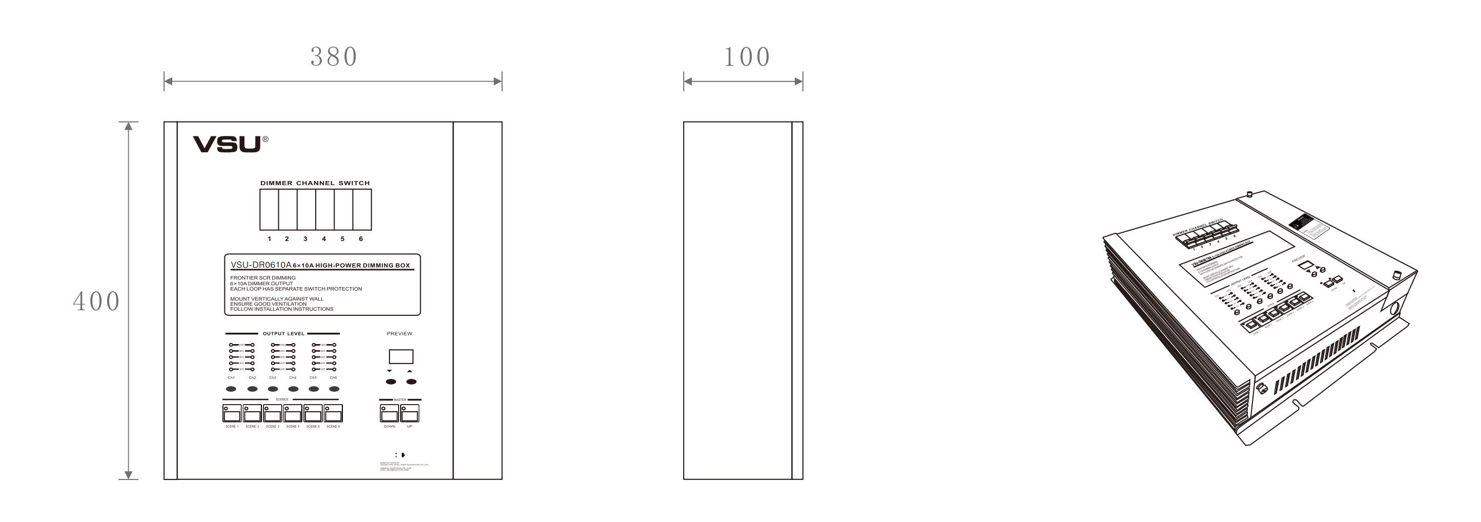 本產(chǎn)品為掛壁式安裝,可控制6路10A(2200W)的射燈、筒燈和白熾燈等的電壓調(diào)光,輸出調(diào)光類型為前沿?cái)夭ㄕ{(diào)光;機(jī)箱采用輕巧型設(shè)計(jì)美觀大方。帶斷路器保護(hù). |