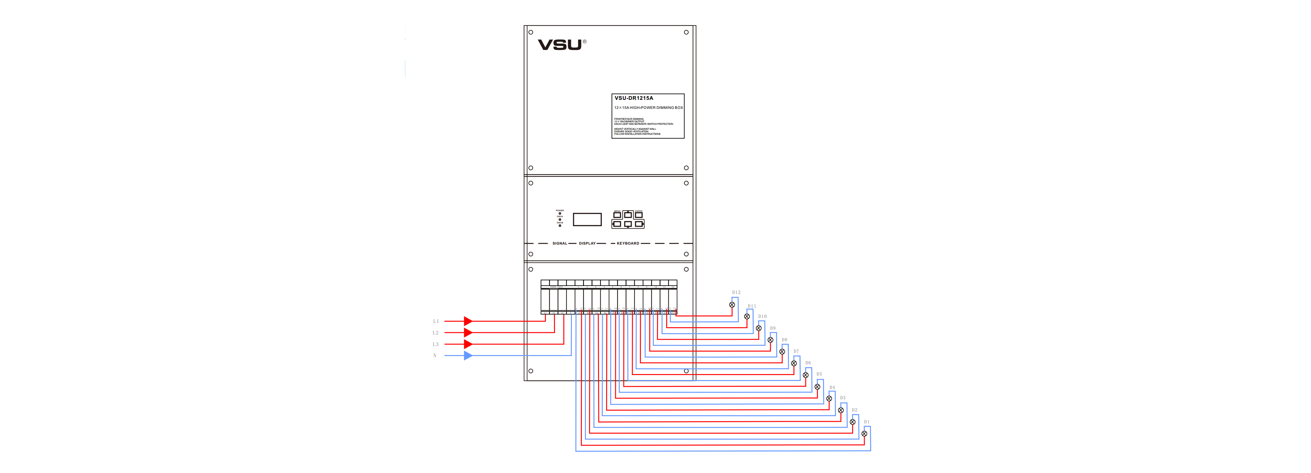 本產(chǎn)品為掛壁式安裝,前沿可控硅調(diào)光;12組調(diào)光通道輸出,每通道3200W;輕巧型設(shè)計美觀大方。帶斷路器保護; |