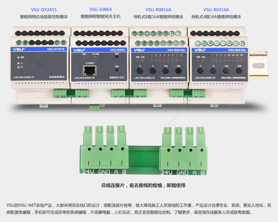總線型智能照明控制系統(tǒng)所具有的特性如下: (1)基于VSU-Net總線,單網(wǎng)關主機支持63個終端ID設備。 (2) 提供TCP/I···