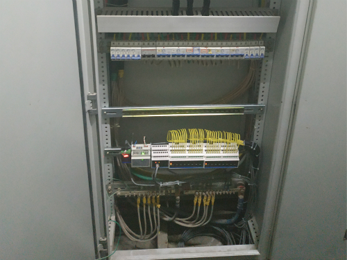 該項目采用了VSU總線系列的網(wǎng)關(guān)主機模塊、電源模塊、級聯(lián)模塊、4路、8路、12路、16路開關(guān)執(zhí)行模塊、連接片及另附邏輯主機、溫度傳感器。232串口模塊收集周圍溫度信息,發(fā)送信息到網(wǎng)關(guān)主機至邏輯主機,通過邏輯主機內(nèi)設(shè)置的溫度開關(guān)范圍,再發(fā)送指令至網(wǎng)關(guān)主機實現(xiàn)空調(diào)開關(guān)。