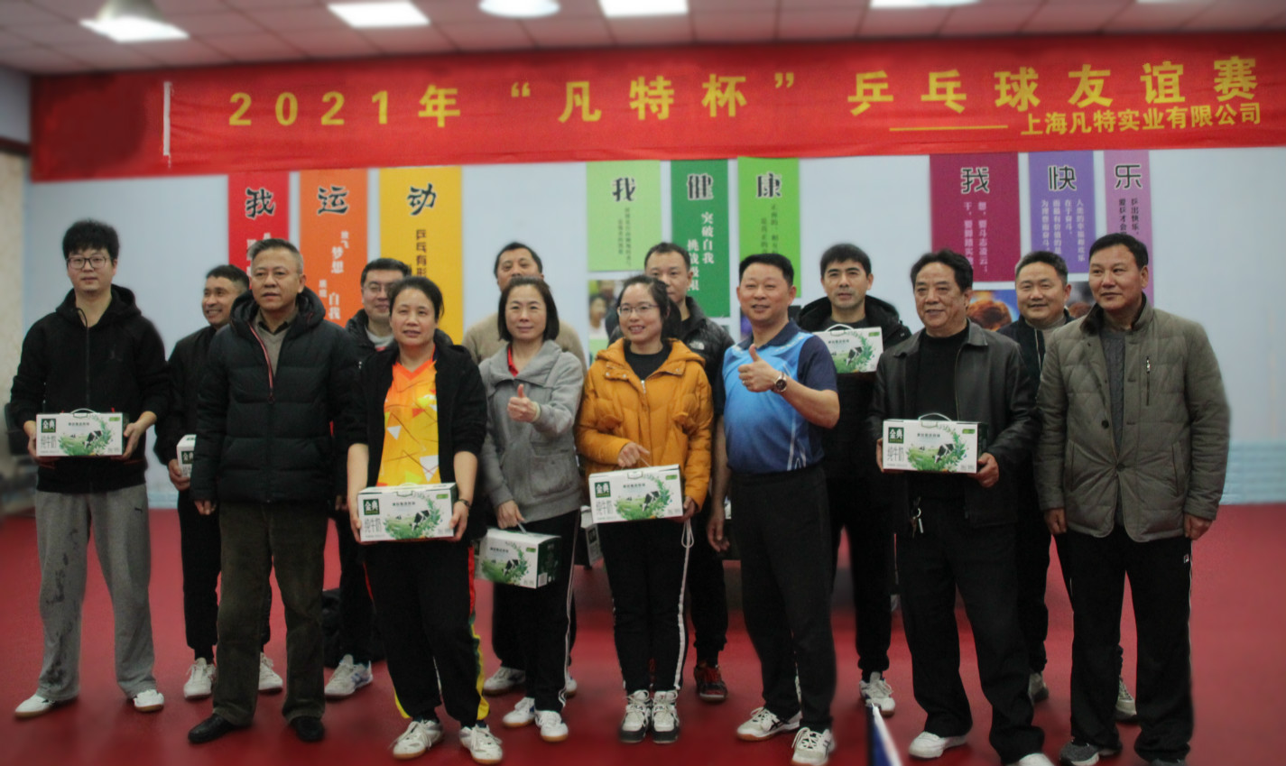 ▲凡特總經(jīng)理(圖前排左七)與古城乒乓球俱樂(lè)部合照